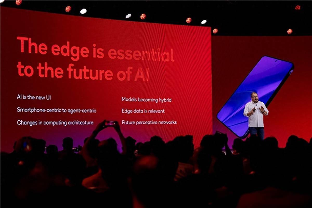 演讲中,安蒙提出了塑造AI未来的六大核心趋势——AI是新的UI(用户界面),从以智能手机为中心转向以智能体为中心,计算架构迎来变革,模型混合化发展,边缘数据相关性增强,迈向未来感知网络。