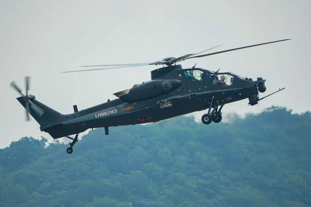在整个编队后方,还有压阵的直20T。T是“突击”的意思,与普通的直20不一样的是,直20T在机身上插着一对不短的“翅膀”,下面挂着很多的导弹和火箭。直20T在作战时会为其他的直升机提供火力压制服务,清扫机降场附近的地方地面目标。