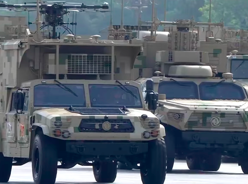 坐着汽车通过观礼台的有很多无人机、无人艇和无人潜航器,它们都是我国信息化建设的成果。