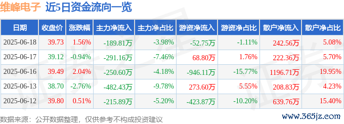 6月18日的资金流向数据方面,主力资金净流出189.81万元,占总成交额3.98%,游资资金净流出52.75万元,占总成交额1.11%,散户资金净流入242.56万元,占总成交额5.08%。